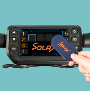 Die Inbetriebnahme mit NFC-Key- card oder Passwort ist einfach, sicher und intuitiv. Das benutzerfreundliche Bedienpanel überzeugt mit einem großen Display und übersichtlicher Technik (individuelle Geschwindig- keitsregelung, eine Licht- und eine Hupentaste) auf Knopfdruck.